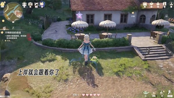 找到一个适合钓鱼的地点,站在水边,确保暖暖面朝钓鱼点。