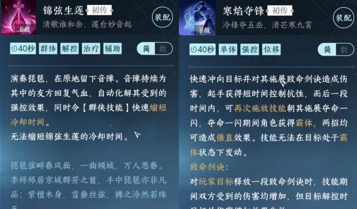 团队增益,持续回血及免控效果。素心流派通用。