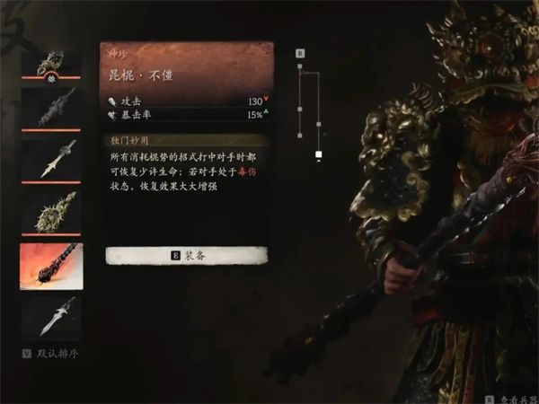效果:使用消耗棍势的招式击中敌人可以恢複生命值。若敌人处于“毒灾”状态,回血量大幅提升,适合喜欢持续战斗的玩家。