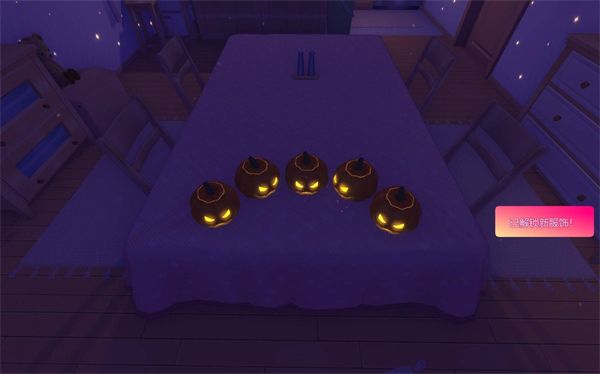 获取方式:在厨房的南瓜装饰互动小游戏中,点亮全部五个南瓜灯后即可解锁万圣节装。
