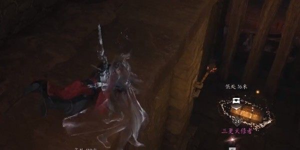 4、沿着楼梯前进,遇到巡逻的NPC时,使用【听风辨位】技能观察他的行动轨迹。