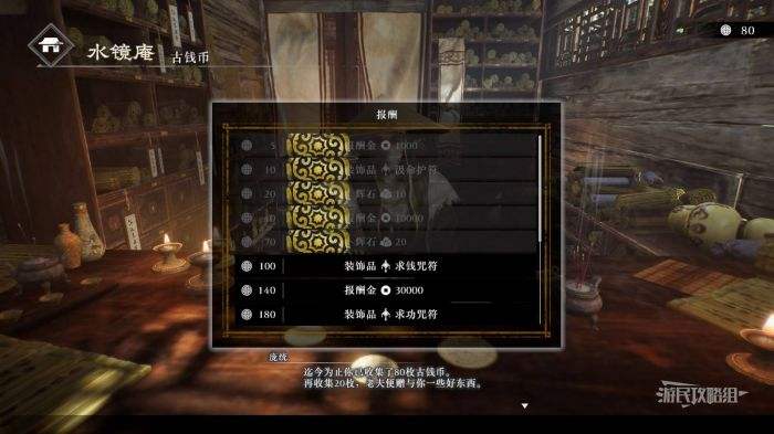 点击【古钱币】可以查看当前古钱币的收集状况,达到累计数量后即可兑换收集奖励。