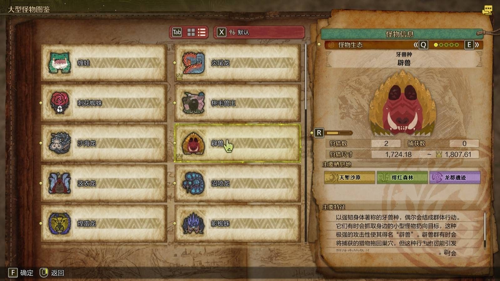 1、在狩猎中发现金冠怪物时,可以按【触摸板→□键】打开怪物列表,并在目标怪物处按【×键】将其保存为调查任务(最多可存50个)。