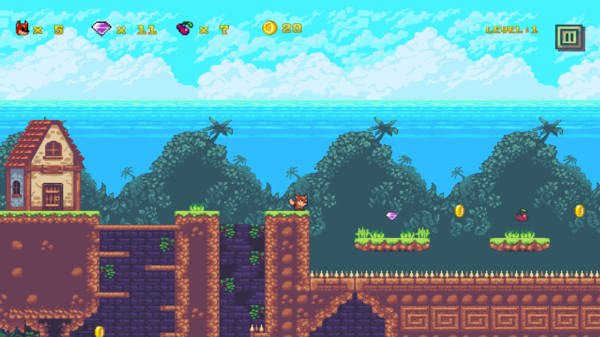 像素狐狸大冒险是一款复古像素画风的冒险闯关小游戏,玩家的任务就是帮助一只小狐狸在游戏中冒险,完成各种关卡的挑战,帮助小狐狸找到它的家乡。这个像素世界中充满着挑战,想过关不是一件简单的事情,各种敌人在这里等着你。玩家需要灵活躲避它,并且收集游戏中出现的金币、钻石,这样就能为你的小狐狸带来一些魔法力量,闯关也会更加轻松一些。