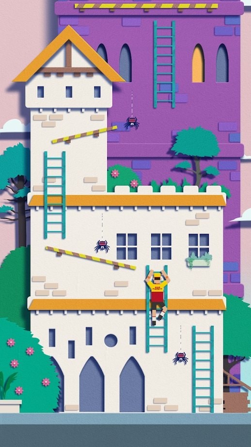 1、画风玩法都非常魔性的跑酷闯关游戏,玩家需要借助梯完成跑酷挑战。