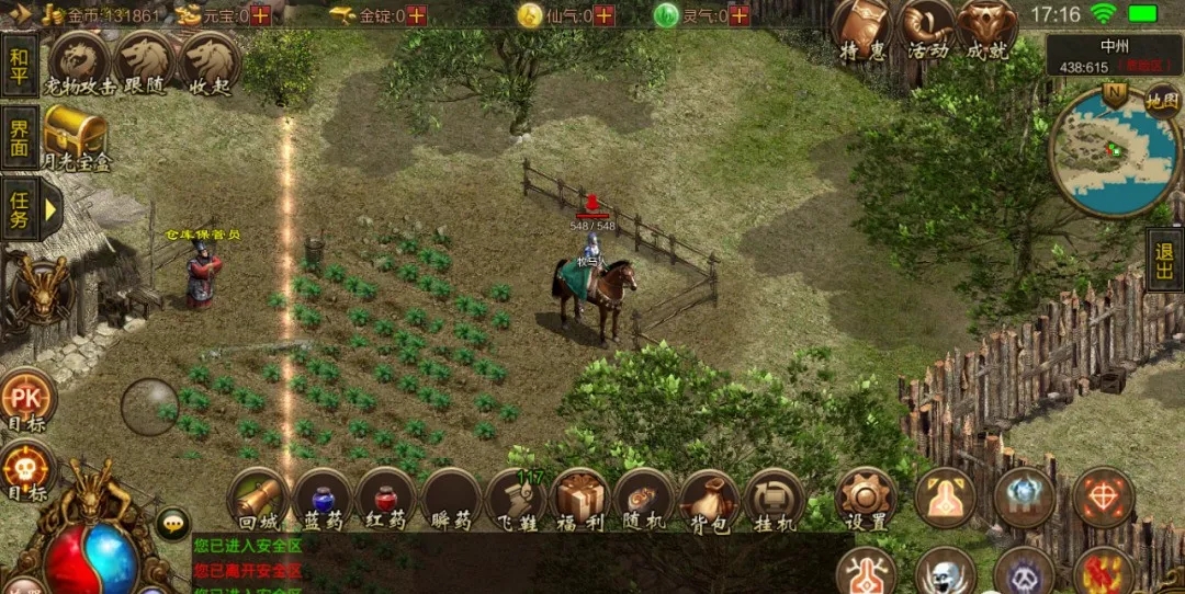 3、找到中州的新手地图传送员,带好药品,进入杀怪获得大量经验。