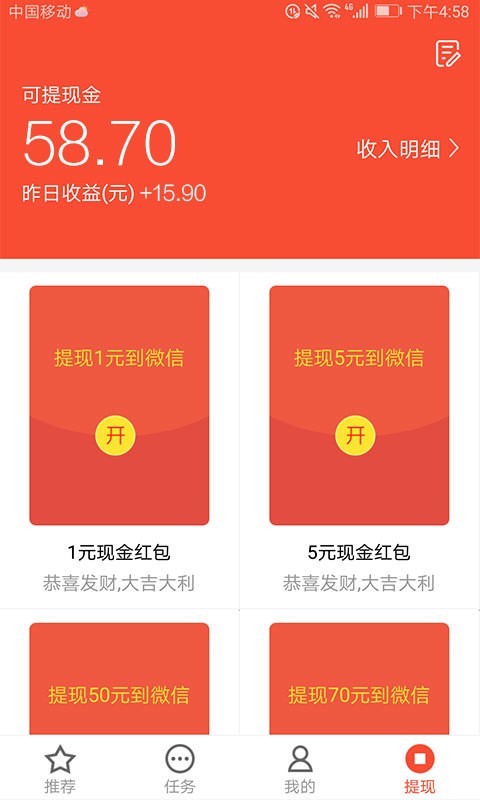 3.收入提现:工资收入随时免费提现,急速到账,任性。