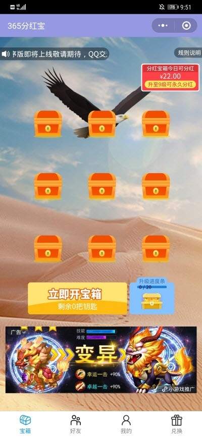 365分红宝app是一款优质的线上试玩软件,试玩的游戏种类是非常丰富的,喜欢的用户都可以在线获取更多的收益,超级适合喜欢玩游戏的小伙伴们,一边打游戏一边赚钱的感觉超级棒,感兴趣的小伙伴快来加入一起体验吧!