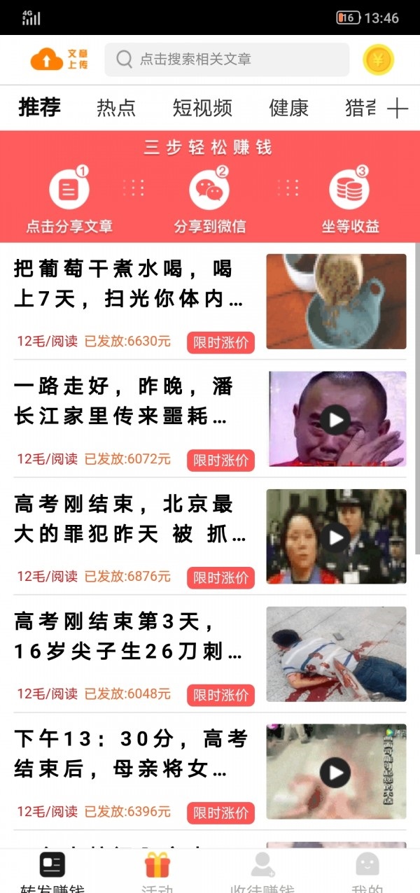 分享赚钱:转发的文章被好友阅览或再次转发。