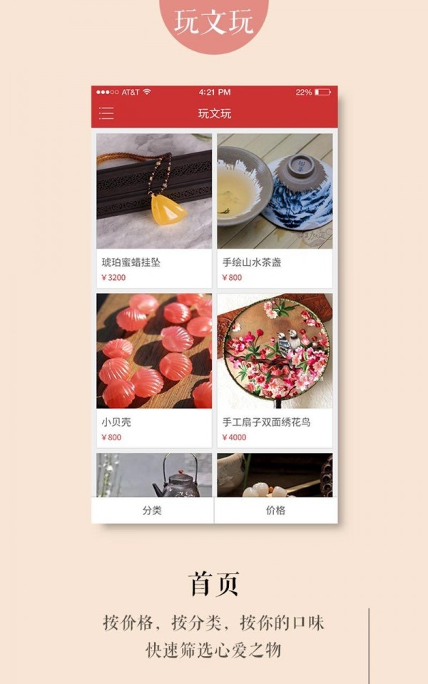 以“零利润、高质量、保真、诚信”为宗旨的一键式购物平台。文玩文玩,玩的就是一种气质。玩文玩是苏州天宫艺品文化传媒有限公司推出的综合性APP,主打诚信、保真、零利润、高质量的文玩产品,竭力让文玩爱好者能够有一个放心选购、值得信赖的线上交易平台。即使是艺界小白也能让你分分钟玩转文玩不打眼。