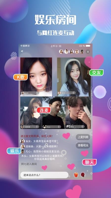 支持语音交友,如果不相亲的话用户可以进入语聊房间之中开麦与多人实时的语音交流;