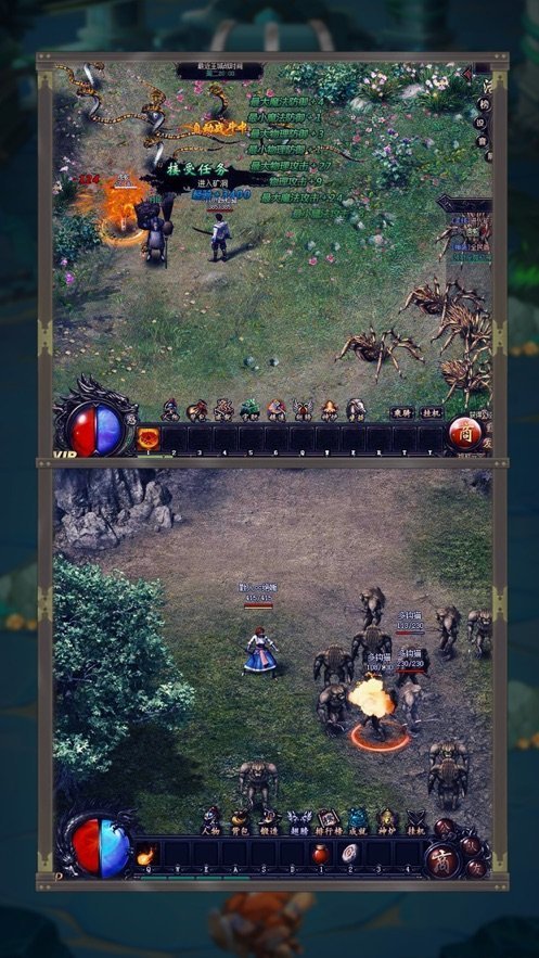 1、经典怀旧,副本玩法超级多,还可以野外夺宝,指尖战斗更刺激。
