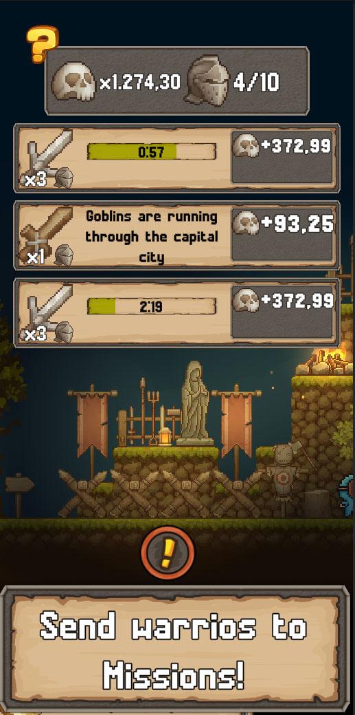 1、派遣勇士去冒险并收集资源,击败洞穴中的坏怪物并获得战利品。