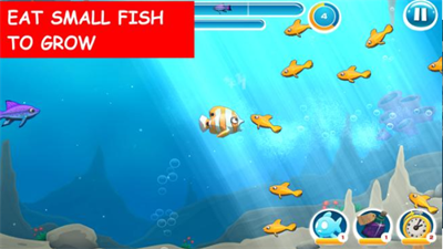 各种趣味的玩法在这里可以感受,不断地吞噬小鱼吧。