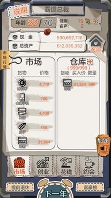 (2)创立公司,感受资产的大起大落。公司的股价每年都会变动,有可能飞速上涨,也可能突然倒闭。玩家可在每一年决定是否追加投资或者倒卖一部分股份。