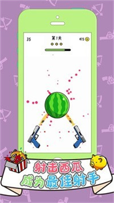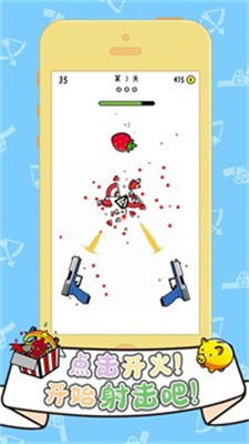 3、在这款游戏里玩家能够使用各种各样的道具去进行闯关,两只手指同时点击双枪射击水果。
