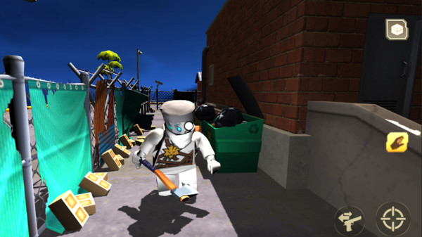 3、玩家第一人称的视觉中自己是拿着手枪的,但是手枪的威力是不足以完全击败追杀你的乐高角色,需要不断的逃亡下去。