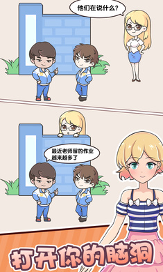 趣味校园,成为班主任和各位可爱的学生们斗智斗勇,对不喜欢上课的同学,对逃课去上网的同学,对课堂上调皮捣乱的同学你又该怎么去教导呢?不用看广告就能拿到奖励。