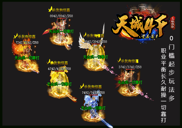 天城4F传奇是近期最新推出的传奇手游,其中设置了特色的四职业玩法,经典高爆自由战斗,还有丰富的福利可以免费领取,一天神装不是问题!并且游戏为正版授权,长期稳定服,玩家可以放心玩耍,精致的画面设计加上炫酷的特效,满屏特效,伤害直接溢出屏幕!
