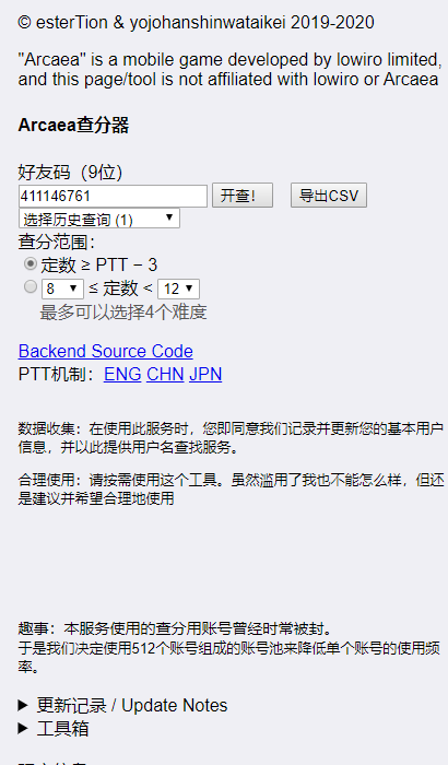 一款专为Arcaea玩家定制的分数查询系统,一键了解好友或自己的排名。