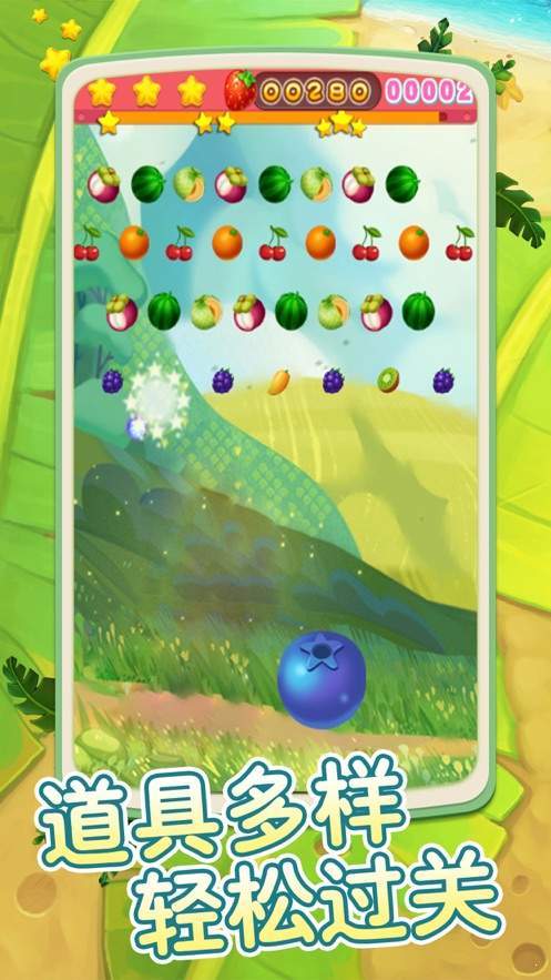 1:玩法非常挺经典的,就是控制你手中的数字小球去消除关卡中出现的水果。