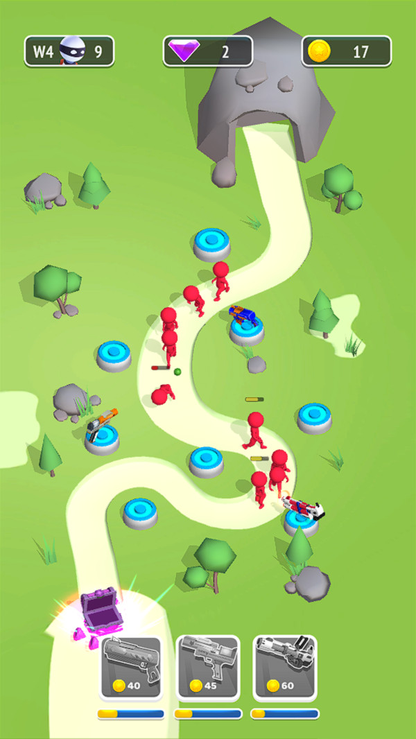 塔防射击是一款拥有卡通画风玩法十分趣味的射击枪战手游,游戏拥有丰富的竞技玩法模式,体验十分的全面,塔防射击玩家需要守卫宝石,射击前来追逐宝石的人,你可以选择不一样的武器进行战斗,喜欢的小伙伴快来下载吧。