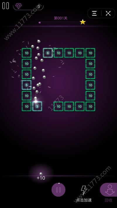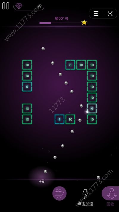 2、你还要不断加速才能更好的完成挑战,尽量让弹球撞击到更多的方块,一定要挑战高分哟;