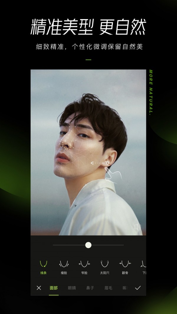 2、为你的磨皮照片带来更多的自然感,对五官识别来进行精准的微调;