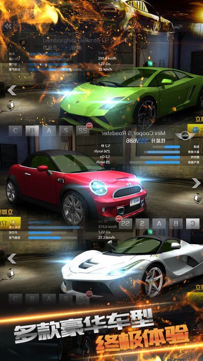 2、海量超级赛车可以自由选择,通过不断游戏解锁新的赛车;