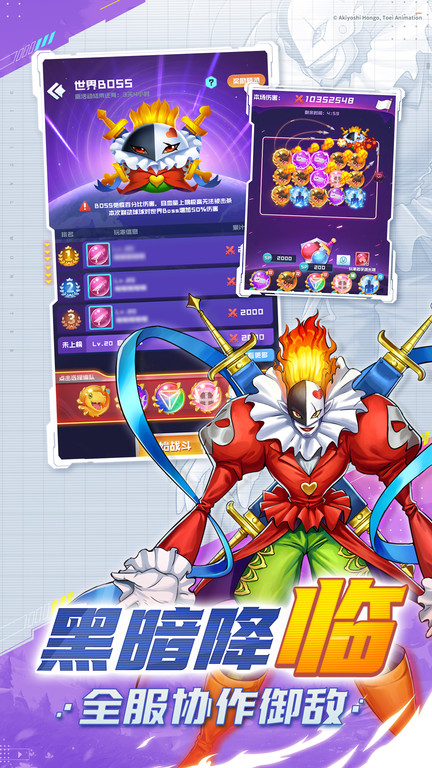 6、黑暗四大天王【小丑皇】化身世界boss,全服玩家集结,齐心对抗黑暗力量;