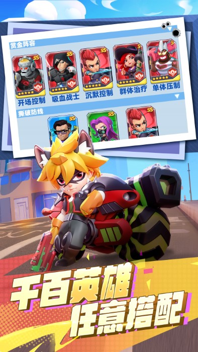 50+名个性英雄、千变万化的机甲等你召唤!随心养成,一键置换0损耗,上百种套路任你配,版本mvp阵容由你创!
