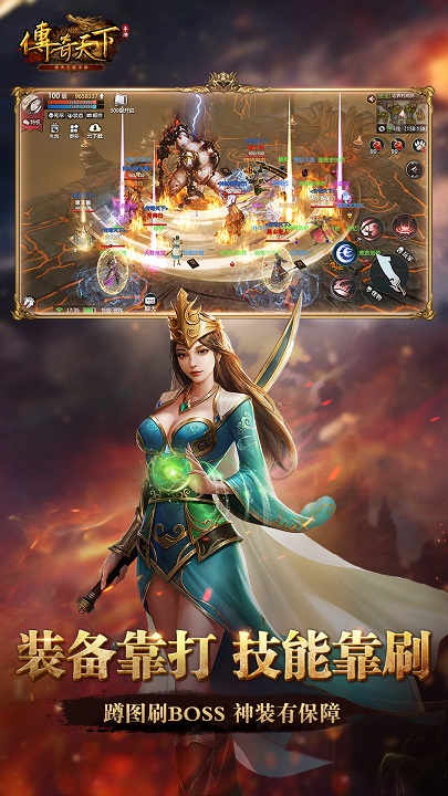 《传奇天下》震撼来袭,万人城战,公会抗争,全方位操控自由PK,再现传奇经典。嗜血PK、皇城争霸、酷炫翅膀、超级BOSS、新式副本等应有尽有,激烈刺激的对抗,更加真实的打斗效果 ,与你一起回忆精彩的传奇世界。