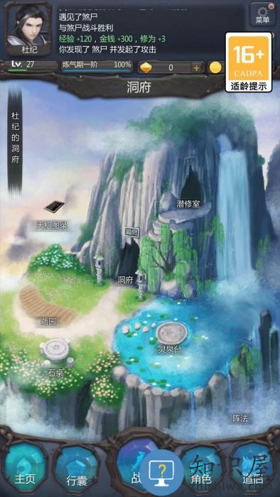 8、其他建筑:灵兽谷暂时意义不大,现阶段获得的灵兽途径太少,而且灵兽提供的材料也非常有限。下面这个圆圈圈就是仙界的洞府,那个老头点一下可以看到你剩余灵气以及总灵气。后期可能还有其他建筑新增。