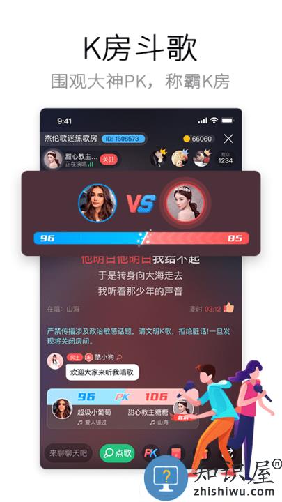 1、K歌直播,随时在线K歌互动,圆你一个主播梦
