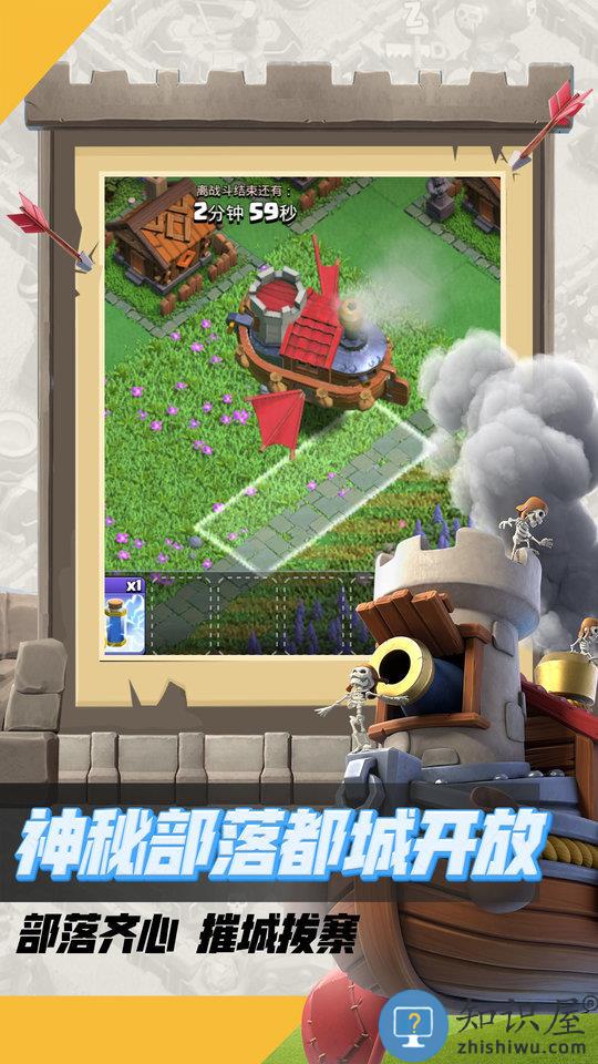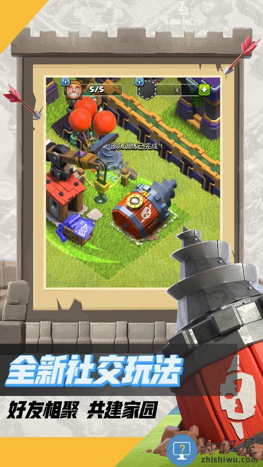 使用全新兵种进行对战,包括狂暴野蛮人、隐秘弓箭手、巨人拳击手、加农炮战车以及新英雄——战争机器。