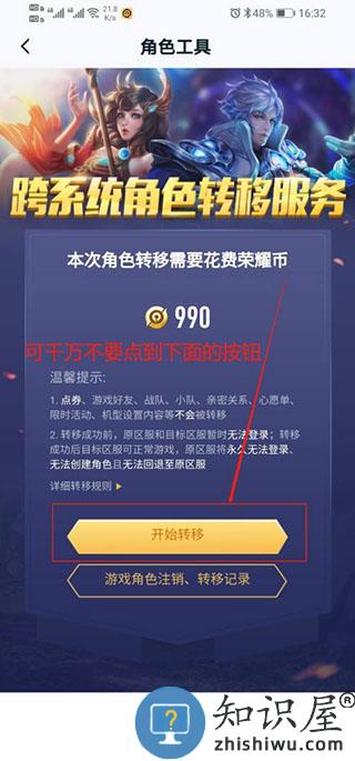4、点击进入到“角色工具”中,之后点击“开始转移”按钮;即可进行角色转移系统了。