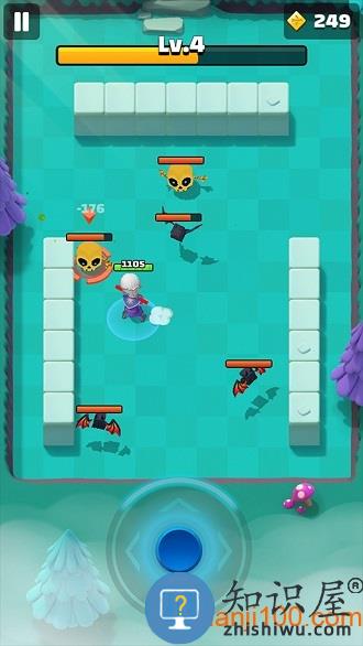 游戏的玩法非常简单,通过拖动人物来控制位移,点击屏幕控制弓箭,松开即放箭。