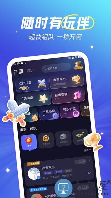 汇聚各大热门手游玩家,根据你的游戏类型和风格,秒配高技术的小哥哥小姐姐们,一起开黑超神