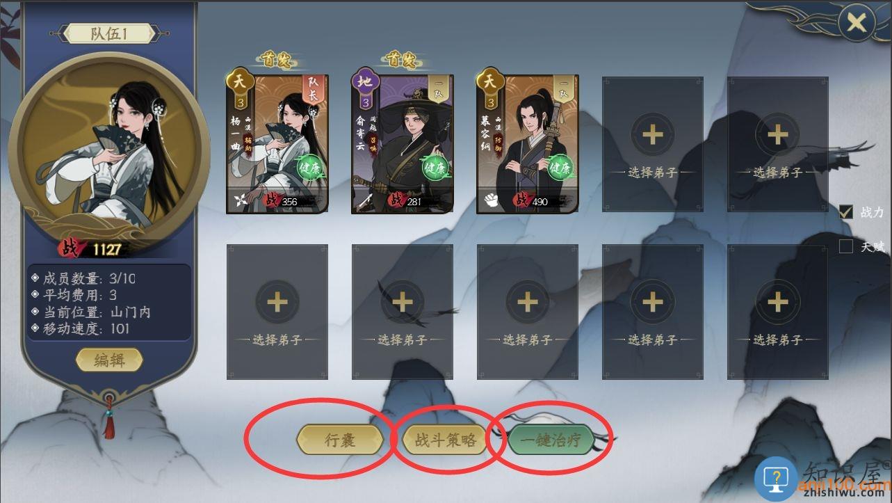 配置好队伍后可点击行囊,将仓库中的药品,道具等转移至行囊内,待队伍返回宗门后,也可将交货物资转移至宗门仓库。 队伍需要返回宗门后才可对队伍中的弟子进行重新编辑。