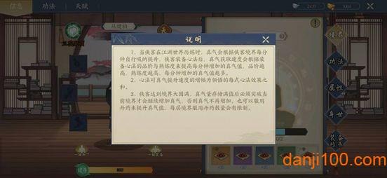 (2)静室弟子可在静室进行运功与突破,运功需要研读心法后才可以进行,突破则需要该侠客真气满足当前上限才可进行突破。