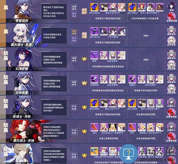 不得不说迅雷跟月煌是真的强,平民女武神商店内可以换取碎片。迅雷相当吃核心等级,6级核心下的迅雷伤害十分爆炸,如果操作党玩家会用蔡天仪下的话,记忆战场内轻松秒杀boss,而且迅雷的圣痕也相对容易获取,建议大家优先培养。月煌对战单个boss,实际输出能力是远远强于黑希的,但毕竟自身没重攻击破盾的手段,大多时候很难下深渊,都是在记忆战场凹分使用。建议大家可以培养起来,毕竟起培养成本不是太大。