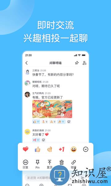 自定义热门话题,支持发送图片、语音、小视频、表情包,与志趣相投的伙伴们实时畅所欲言