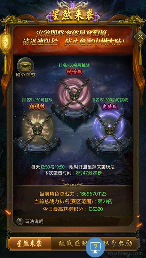 每天12:50-19:50可以在星穹副本中参加星煞来袭,也就是以前的入侵模式。在星煞来袭中可以获得星穹魔石和星穹之心微粒,用于强化星穹之心!