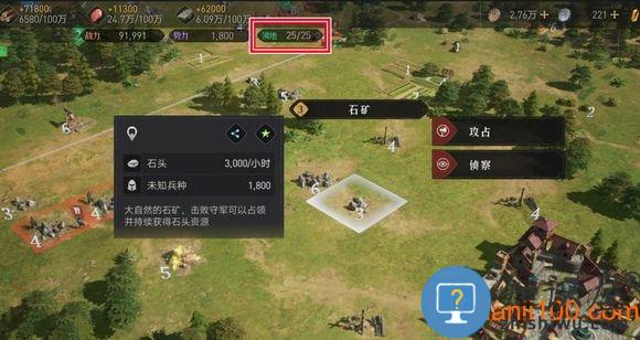 三、提升战力开荒进行到这里的时候,相信领主们对基本流程也有了一定的了解,资源田也占领到了上限。可此时我们的资源田等级都较低,每小时获取的资源量很少,为了更快的发展,我们势必要攻打更高级的资源,把原先的低级田慢慢放弃换新。(点击屏幕上方资源打开领地总览,找到想要放弃的领地,点击‘—’号即可快捷放弃。)