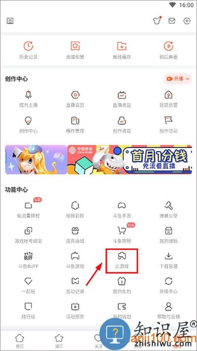 1、打开斗鱼云游戏,即斗鱼app,点击右下角【我的】,下滑屏幕找到【云游戏】,然后点击;