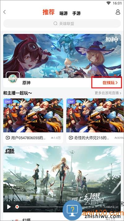 2、可以看到里面有着很多云游戏,如原神、幻塔等,找到一款想玩的游戏,点击【在线玩】;