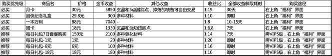 微氪党建议月卡必买,有月卡后,掉落的装备可以出售给玩家,就能通过交易装备,白嫖银票啦~,有条件的话,必买礼包也是推荐全部购买的,收益比高,买了绝对不亏!