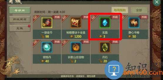 ①装备强化:所需材料为玄晶。每周500个折扣限购,超过则按原价无限购买;帮会坊市每日限购10个(使用帮贡购买);师徒商店每周限购50个(师徒币购买);以及部分活动有机会获得。