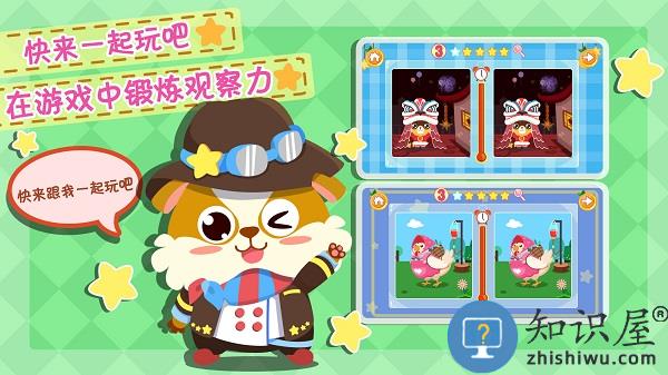 儿童益智找茬游戏是一款早教游戏,这款游戏都是卡通的风格,宝宝需要在两幅大致相同的画中找到不同的点,锻炼孩子的观察能力。里面有精美的画面和轻松的音乐伴随着孩子玩耍,感兴趣的朋友快来下载吧!