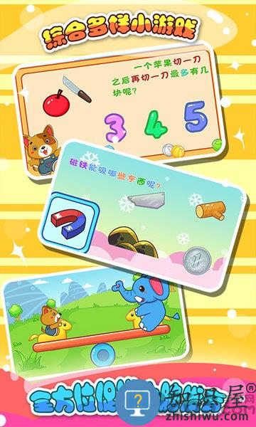 游戏可以用来开发幼儿的智力、提高其认知能力。游戏有4个关卡,每个关卡都有新颖的游戏。游戏内容也很丰富,每个关卡有10个小游戏,一共有40个小游戏。幼儿通过玩游戏获得智力种子来开启更高的关卡,游戏中幼儿还可以获 得称号,大大鼓励儿童,从小树立自信心。
